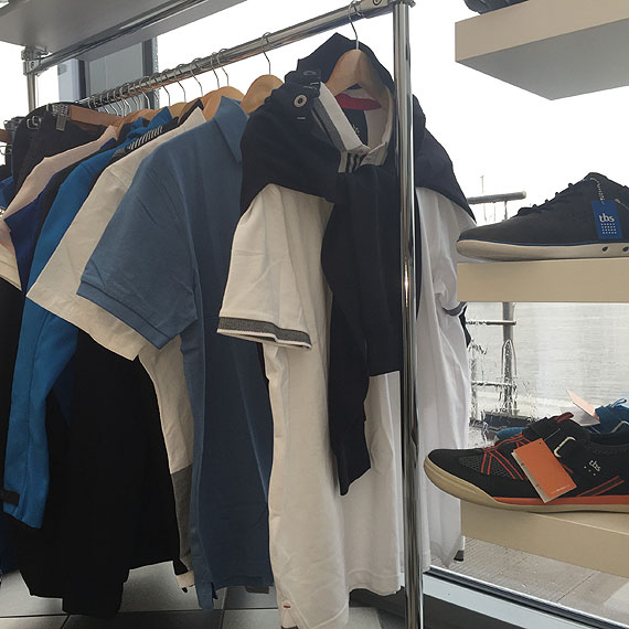 W pierwszym można kupić prawie wszystko potrzebna do przeprowadzenia remontów łodzi. Znajdziemy tu profesjonalną chemię jachtową Sea Line, wszystkie potrzebne liny, elementy ze stali nierdzewnej, kleje, wypełniacze, itp. Itd. Sklep ten mieści się na terenie tzw. Mariny Technicznej, jest otwarty 7 dni w tygodniu od 8.00 do 20.00, co dla żeglarzy dłubiących przy swoich jachtach jest dużym udogodnieniem. W drugim sklepie, mieszczącym się w recepcji Mariny, kupimy odzież i buty żeglarskie renomowanej francuskiej marki tbs. Wybór butów tak damskich jak i męskich jest wręcz, jak na ten segment, powalający. Przy czym jest to oferta skierowana nie tylko dla osób czynnie uprawiających żeglarstwo. Żeglarski styl od dawna przebił się do mody masowej. Jakość szytych w Portugalii butów tbs zadowoli nawet najbardziej wybrednych konsumentów. To jednak nie koniec zmian.