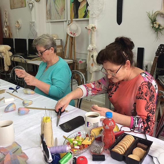 Panie ze SUTW w Kamieniu Pom. postanowiły uszyć poduchy z materiału futerkowego, które posłużą do zmiany wystroju ich mieszkań.