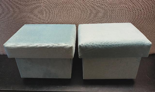 Sprzedam dwie pufy. 40x 40x 45 cm. Nowe, obite jasno zielonym welurem. Otwierane. 120 zł.