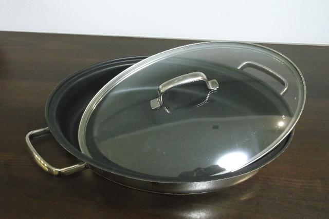 Sprzedam patelnię WMF Durit to specjalistyczna patelnia o wymiarach 38×26 cm, stworzona do perfekcyjnego przygotowania ryb i delikatnych dań. Prostokątny kształt zapewnia optymalne wykorzystanie powierzchni do smażenia, pozwalając na równomierne obsmażenie całego fileta, ryby lub większych kawałków mięsa. Korpus wykonany jest z trwałej stali nierdzewnej Cromargan® 18/10 o polerowanym wykończeniu, która łączy odporność na zarysowania i korozję z estetyką i łatwością utrzymania czystości. Powłoka Durado jest nieprzywierająca i odporna na temperaturę do 400 °C, co umożliwia smażenie z minimalną ilością tłuszczu i bez przypalania potraw. W zestawie znajduje się szklana pokrywka, która pozwala kontrolować proces gotowania bez konieczności podnoszenia i utraty ciepła, co pomaga zachować soczystość i aromat potraw. Spód TransTherm® gwarantuje szybkie i równomierne nagrzewanie na wszystkich kuchenkach, w tym indukcyjnych. cena 150 zł więcej info 605954215
